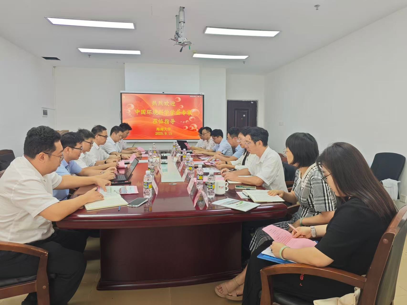 2025年9月15日,中国环境科学学会副理事长兼秘书长夏祖义一行莅临海南大学william威廉中文官网调研指导,并在农科楼主楼401会议室举行座谈会。海南大学党委常委、副校长岳文,海南省环境科学学会秘书长莫凌,合作企业海南中远海运环保科技有限公司党支部书记李超鹏出席会议。学院院长徐顺清、孙轶斐、党总支书记王旭等学院领导及部分教师参加座谈会,执行院长孙轶斐主持会议。