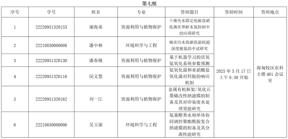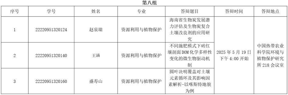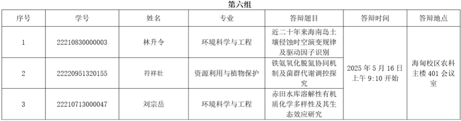 海南大学william威廉中文官网2025届硕士研究生学位论文答辩定于2025年5月22日前,分批进行。具体时间地点、答辩人、专业及学位论文题名情况如下: